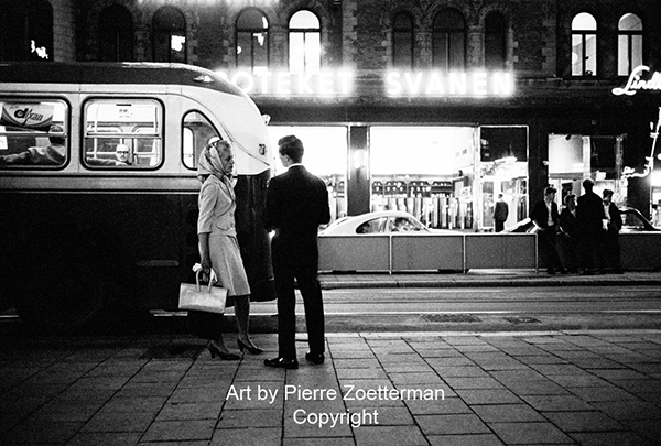 En sommarkväll 1966 medan jag väntade på att min flickvän skulle sluta jobba på Apoteket Svanen blir jag orolig. Eftersom jag vet att hon räknar kassan så här dags och en man står och tittar rakt på henne ute vid entrén undrar jag om jag borde göra något. Plötsligt upptäcker jag dramatiska små världar över hela kvarteret. Mannen i bussen, paret som diskuterar häftigt, killgänget