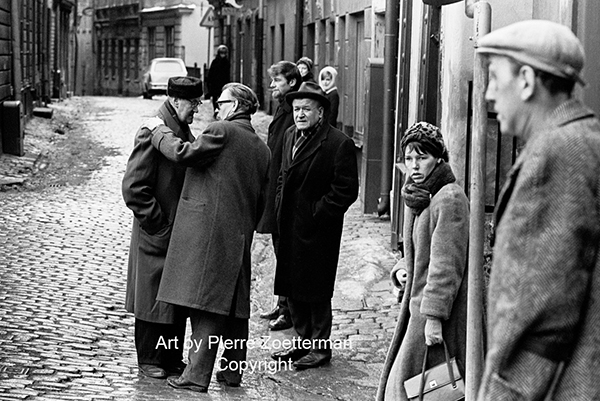 Stortorget, vintern år 1966. Pilsnergubbar samlas och diskuterar och skroderar. Då som nu, håller sig folk mest på avstånd och vill helst inte men tittar ändå nyfiket på.